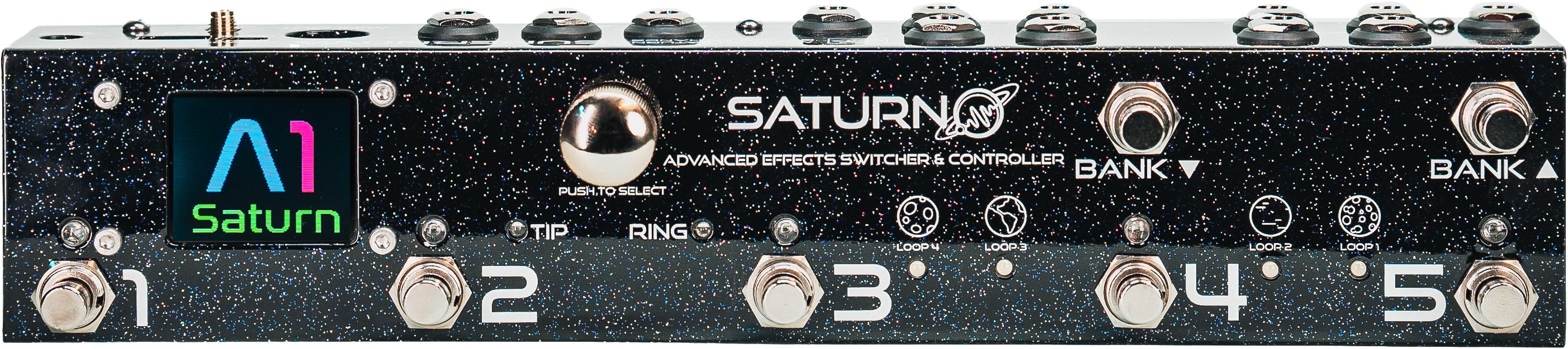 130 Patches | 26 Banks | 5 Footswitches + Bank Up & Bank Down | 4 Effects Loops for Classical Stomps | MIDI Out | USB A Host Connection (Full compatibility, even with equipments without USB MIDI) + USB C Type for firmware update and MIDI Support through PC/Mac/iOS/Android | Expression Pedal Input (Accepts pedal with Toe switch) | 2 Remote Switches Output (Control your AmpChannel, TapTempo, Pedal External Functions, etc) | Wireless Connectivity with Saturn® Equipments | Color Graphic Display