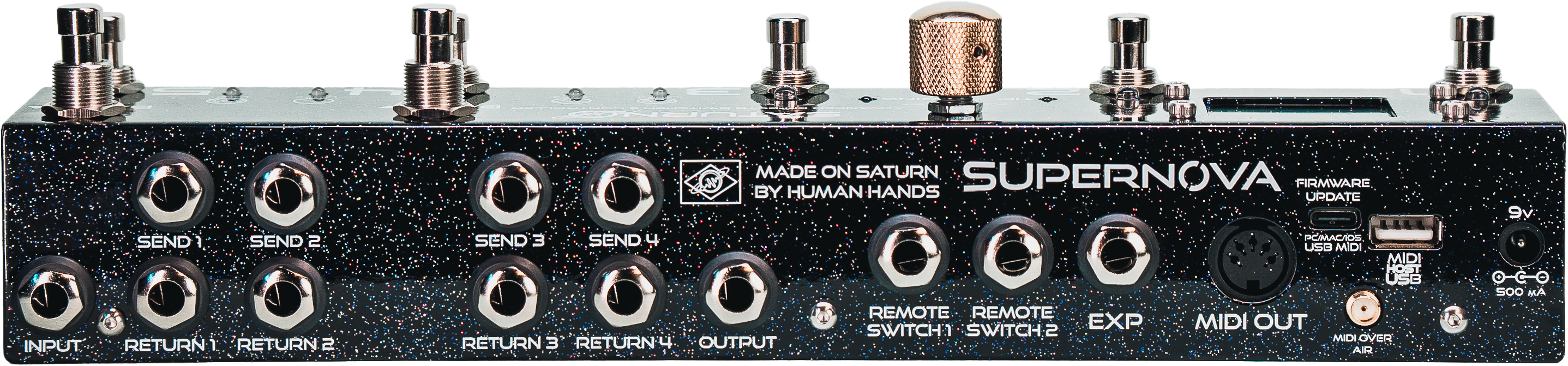 We know every rig is unique and can raise questions — but don’t worry. The Supernova controller adapts to any setup, and here at Saturno we’re ready to guide you every step of the way. We’ll help with your board assembly, wiring, and all the details. Most importantly, we’ll make sure you get the most out of your gear — and finally say goodbye to pedalboard tap dancing for good.