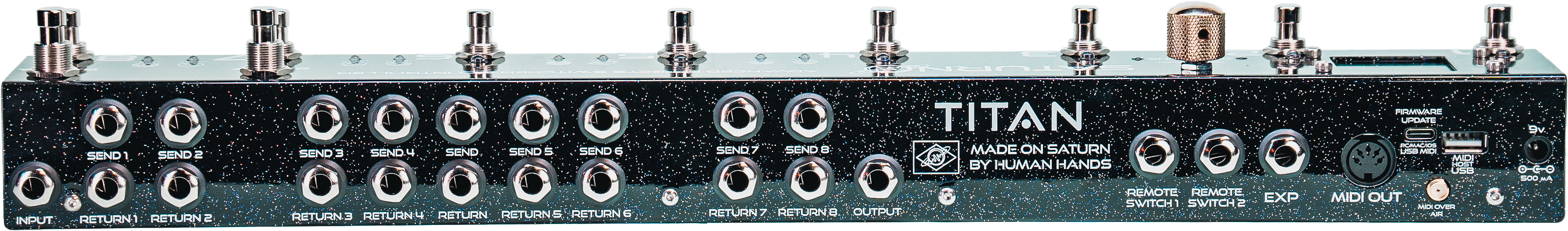 Titan transforms live performance into a seamless experience: up to eight pedals in true bypass loops, full MIDI control, real-time programmed changes, and the freedom to move between effects without losing focus. Everything is under control.